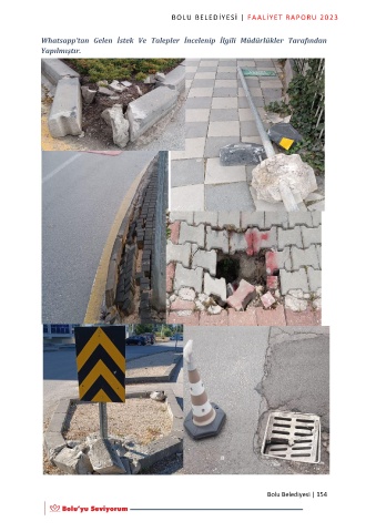 BOLU BELEDİYESİ | FAALİYET RAPORU 2023 Whatsapp’tan Gelen İstek Ve Talepler İncelenip İlgili Müdürlükler Tarafından Yapılmıştır. Bolu Belediyesi | 154