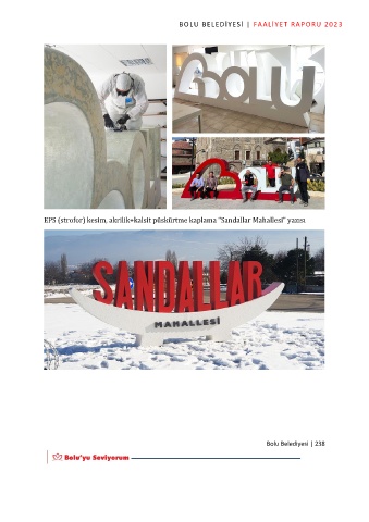 BOLU BELEDİYESİ | FAALİYET RAPORU 2023 EPS (strofor) kesim, akrilik+kalsit püskürtme kaplama “Sandallar Mahallesi” yazısı Bolu Belediyesi | 238