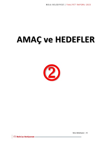 BOLU BELEDİYESİ | FAALİYET RAPORU 2023 AMAÇ ve HEDEFLER Bolu Belediyesi | 31