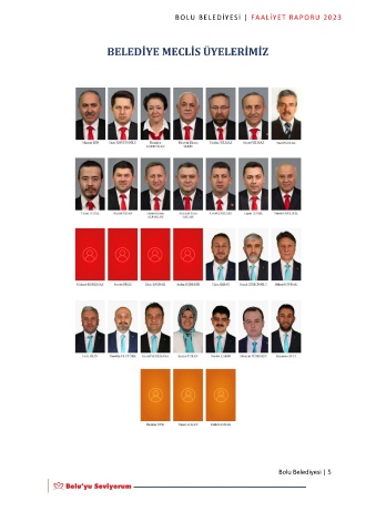 BOLU BELEDİYESİ | FAALİYET RAPORU 2023 BELEDİYE MECLİS ÜYELERİMİZ Bolu Belediyesi | 5