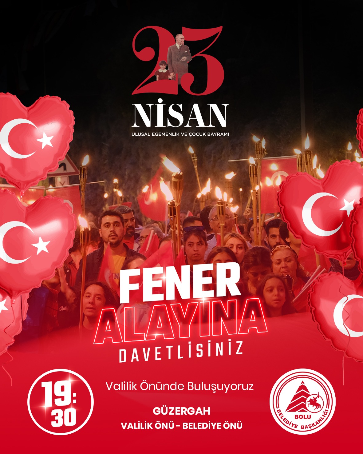 Bolu Belediyesi, 23 Nisan’da düzenleyeceği Fener Alayı’na tüm Bolu halkını davet etti.