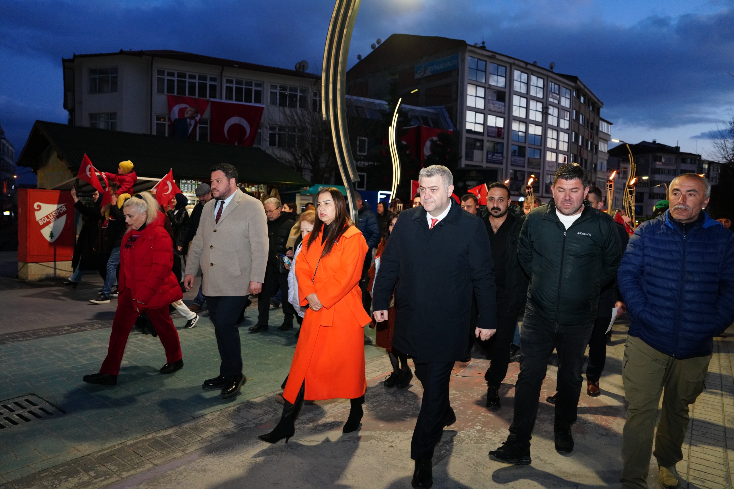 Bolu Belediyesi tarafından düzenlenen Fener Alayı’nda binlerce kişi, meşaleler ve Türk bayraklarıyla yürüyüş gerçekleştirdi. Son dönemde Şanlıurfa ve Kahramanmaraş’ta yaşanan saldırılar ile diğer üzücü olaylar nedeniyle yürüyüş, buruk bir atmosferde geçti.